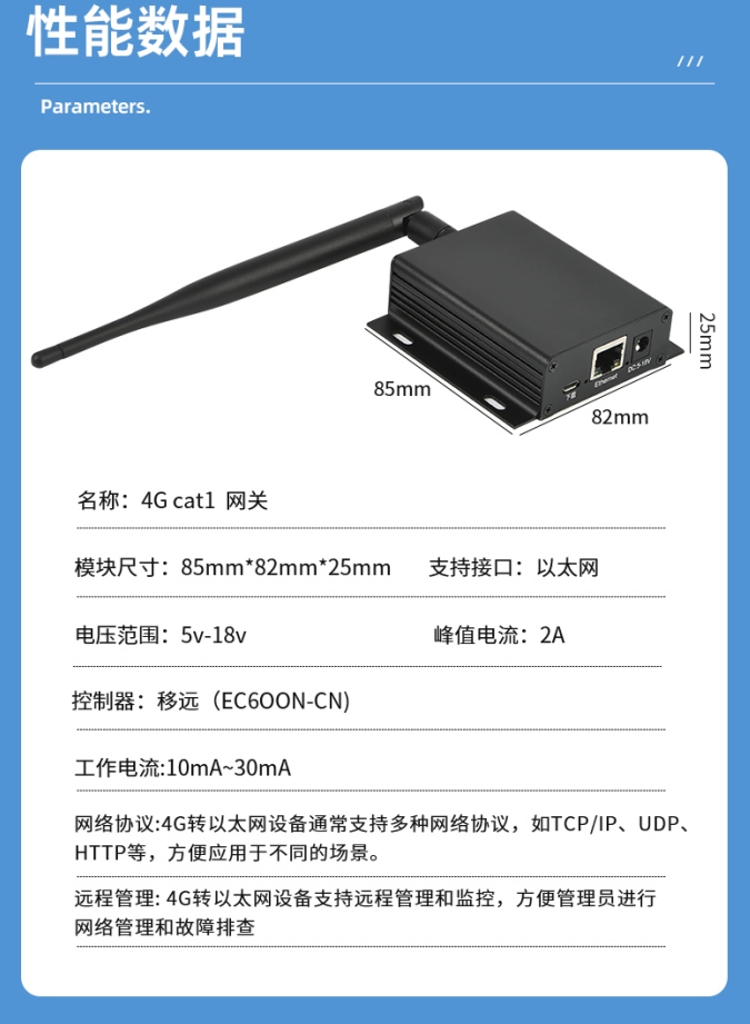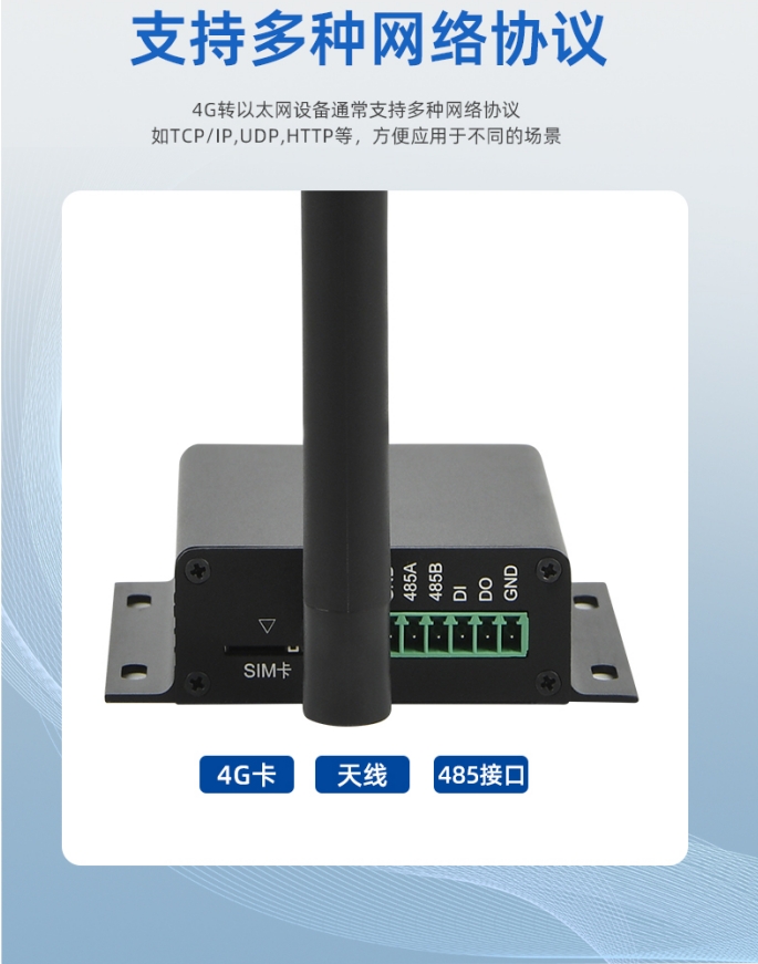 支持RJ45网口、RS485、Mcro usb等接口,兼容TCP/IP、UDP、http等协议